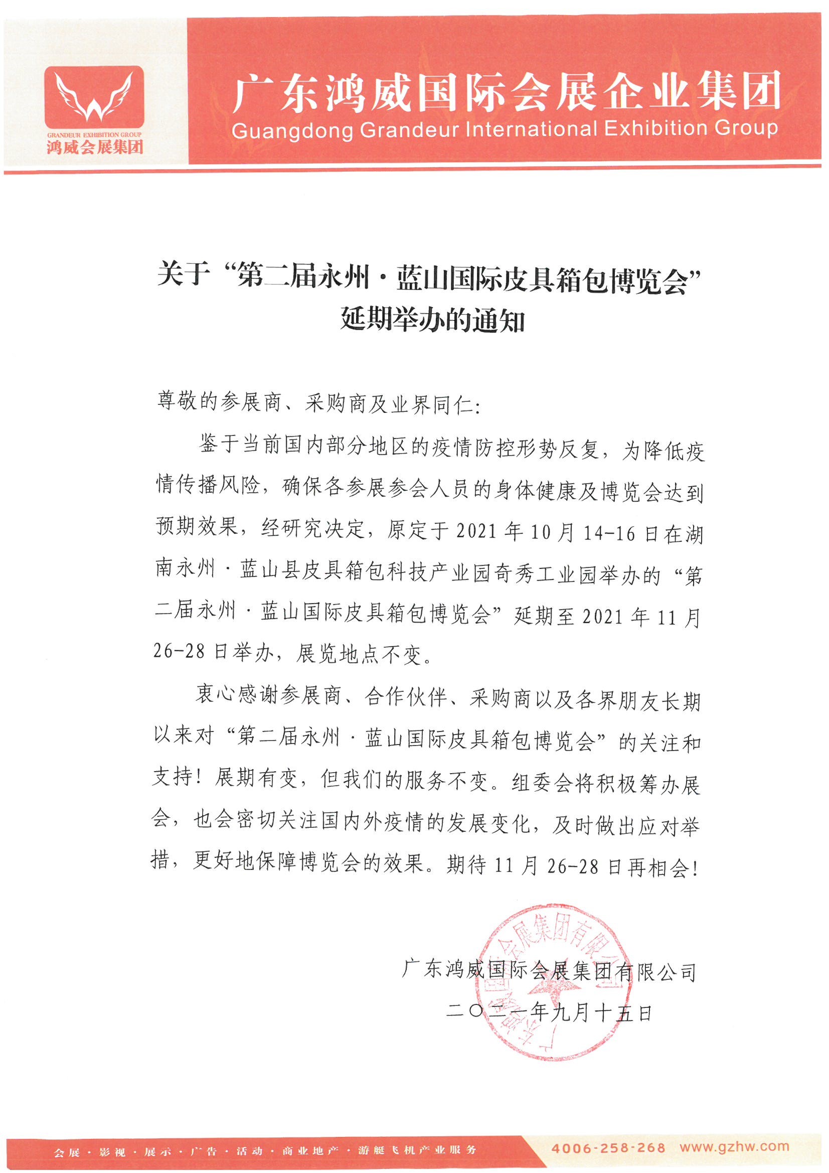重要通知|“第二届永州·蓝山国际皮具箱包博览会”延期举办